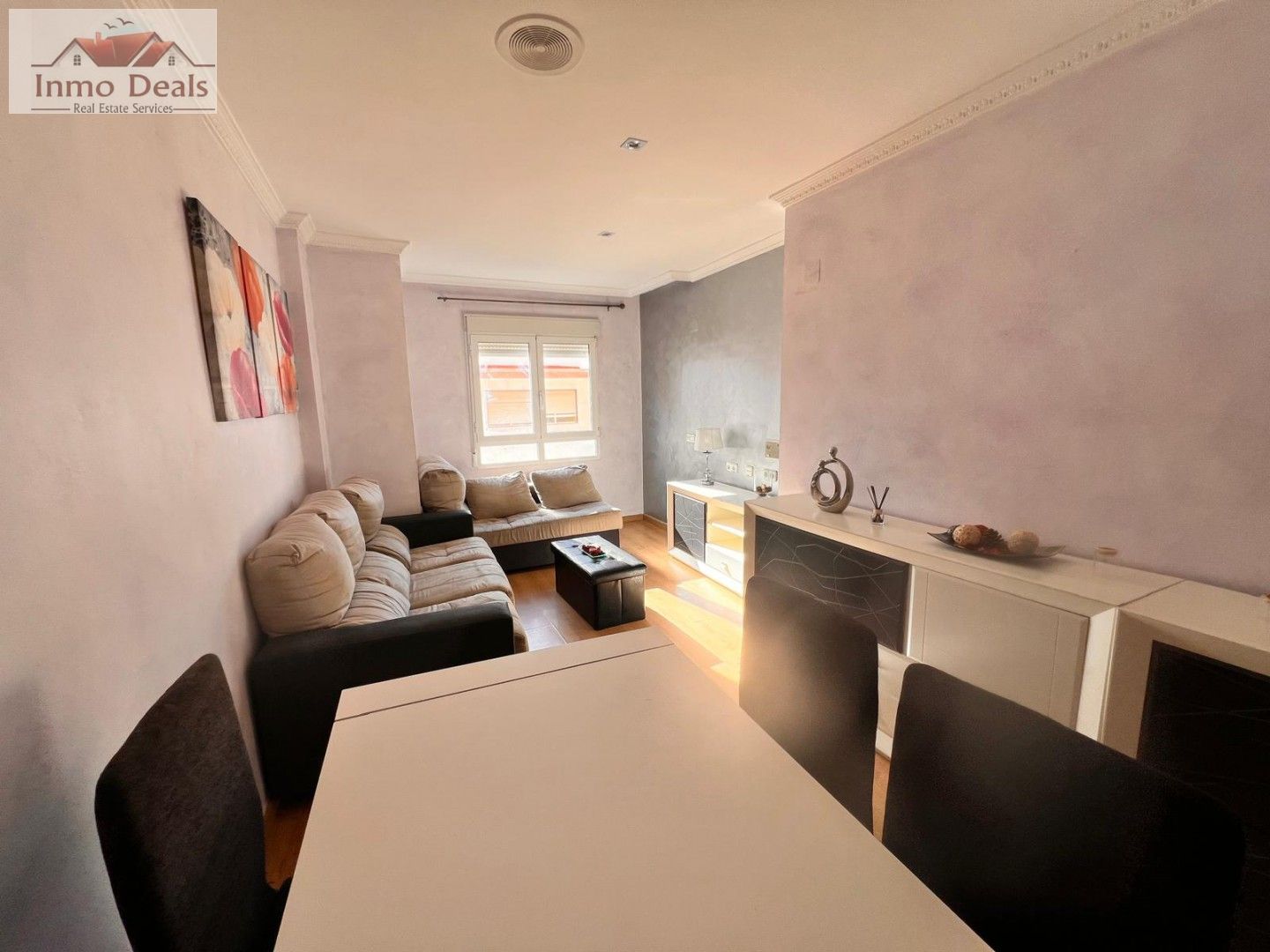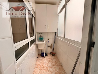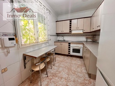 El apartamento tiene 100m² distribuidos en tres amplios dormitorios con los armarios empotrados, dos baños completos, amplio salón-comedor totalmente amueblado y una cocina independiente totalmente equipada con el acceso a la galería para lavadora.