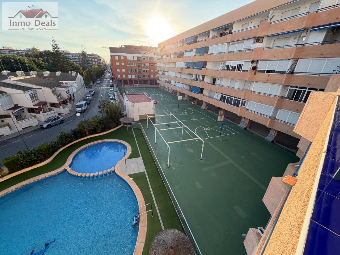 La vivienda dispone de una piscina comunitaria para refrescarse en los meses del verano y una amplia zona deportiva para practicar el deporte en su tiempo libre.