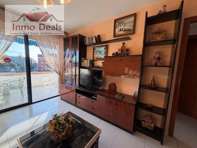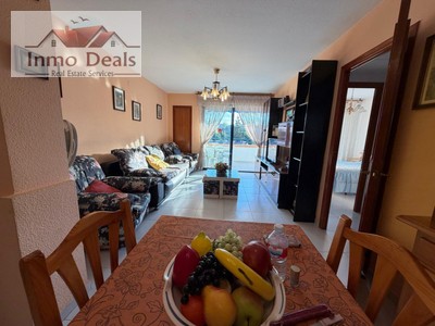 El apartamento tiene 75m² divididos en dos amplios dormitorios, uno de ellos con el acceso directo a la terraza, un baño completo con la bañera, una amplio salón-comedor totalmente amueblado, una cocina abierta totalmente equipada y una amplia terraza con las vistas despejadas de la zona y de la piscina para disfrutar del clima mediterránea.